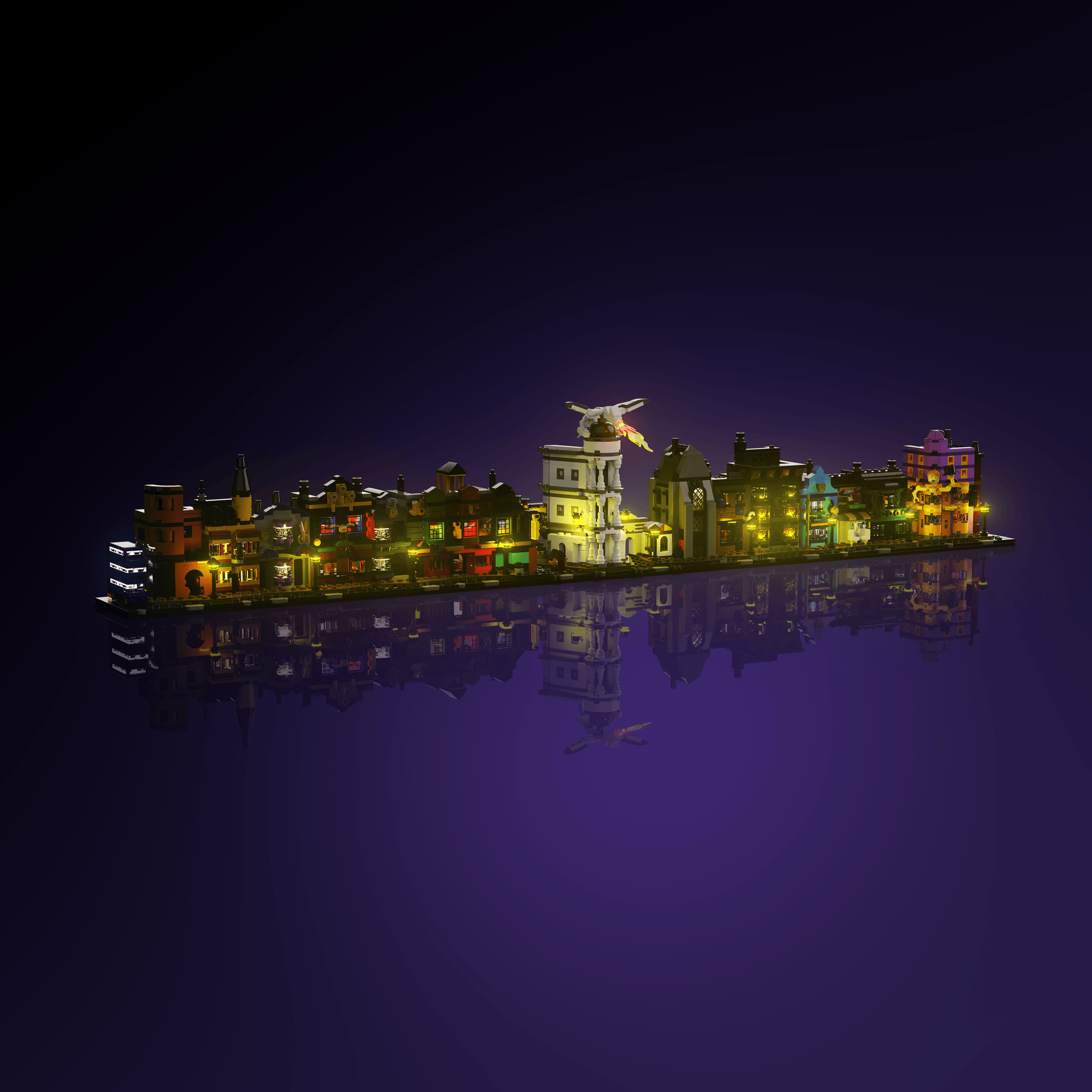 • Customizable Lighting Effects: Experience unique lighting effects, such as flickering flames behind Gringotts' dragon, adding depth and excitement to your display.