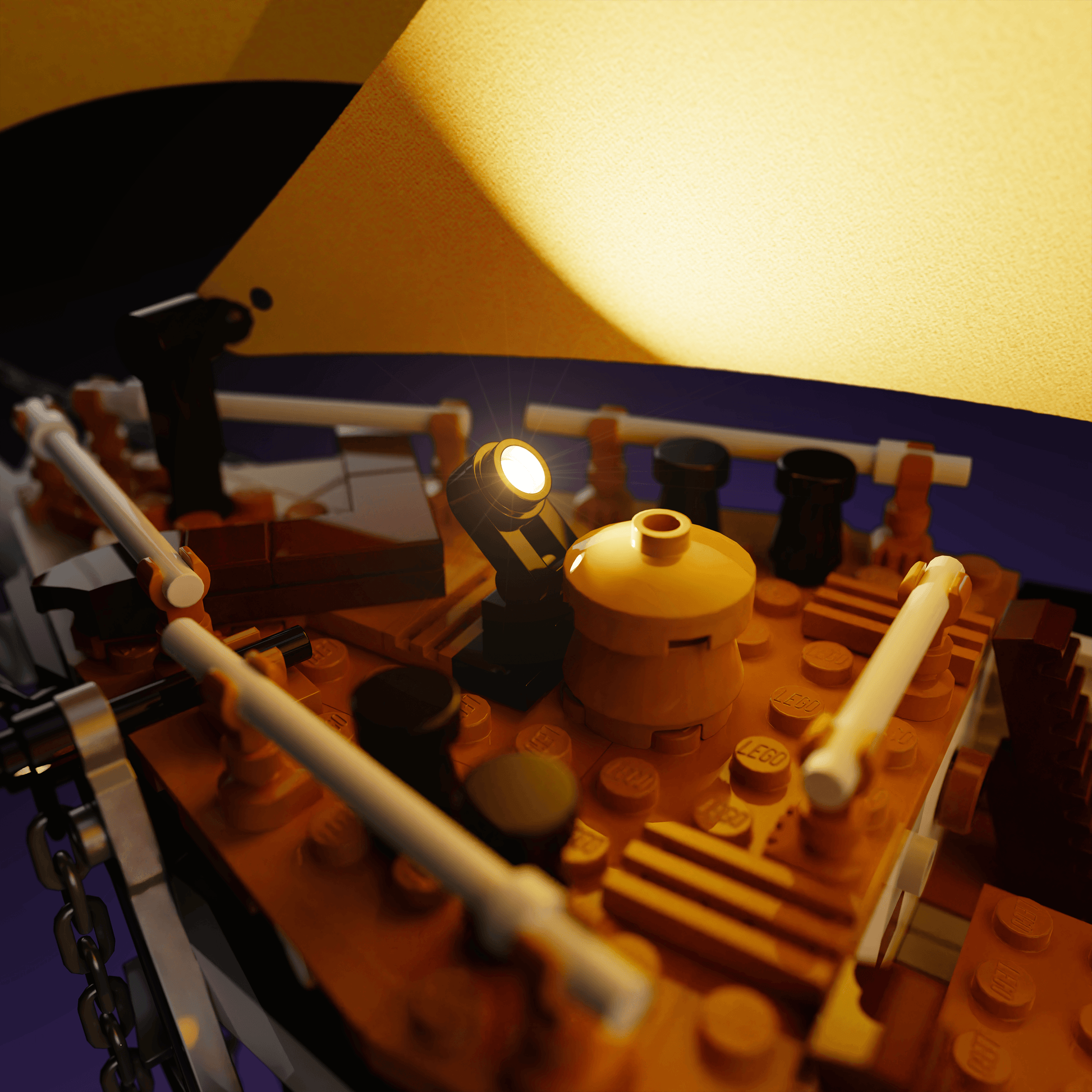 • Realistic Flickering Lights: Each lifeboat features a flickering light that mimics a lantern’s flame, adding to the ship's authenticity and charm.